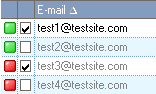 In fase di invio di un messaggio, gli indirizzi non iscritti o non attivi saranno saltati; l’invio avverrà dunque solo agli indirizzi che siano contemporaneamente iscritti ed attivi. E’ facile individuare a colpo d’occhio gli indirizzi esclusi dal mailing in quanto visualizzati in colore grigio: